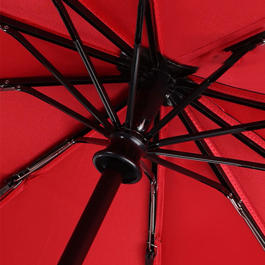 This fully automatic business umbrella features a double-layer canopy with windproof construction and a black UV-resistant inner coating, offering excellent performance in both rain and sun. The enlarged canopy size provides better coverage, while the one-button open/close system ensures effortless use.